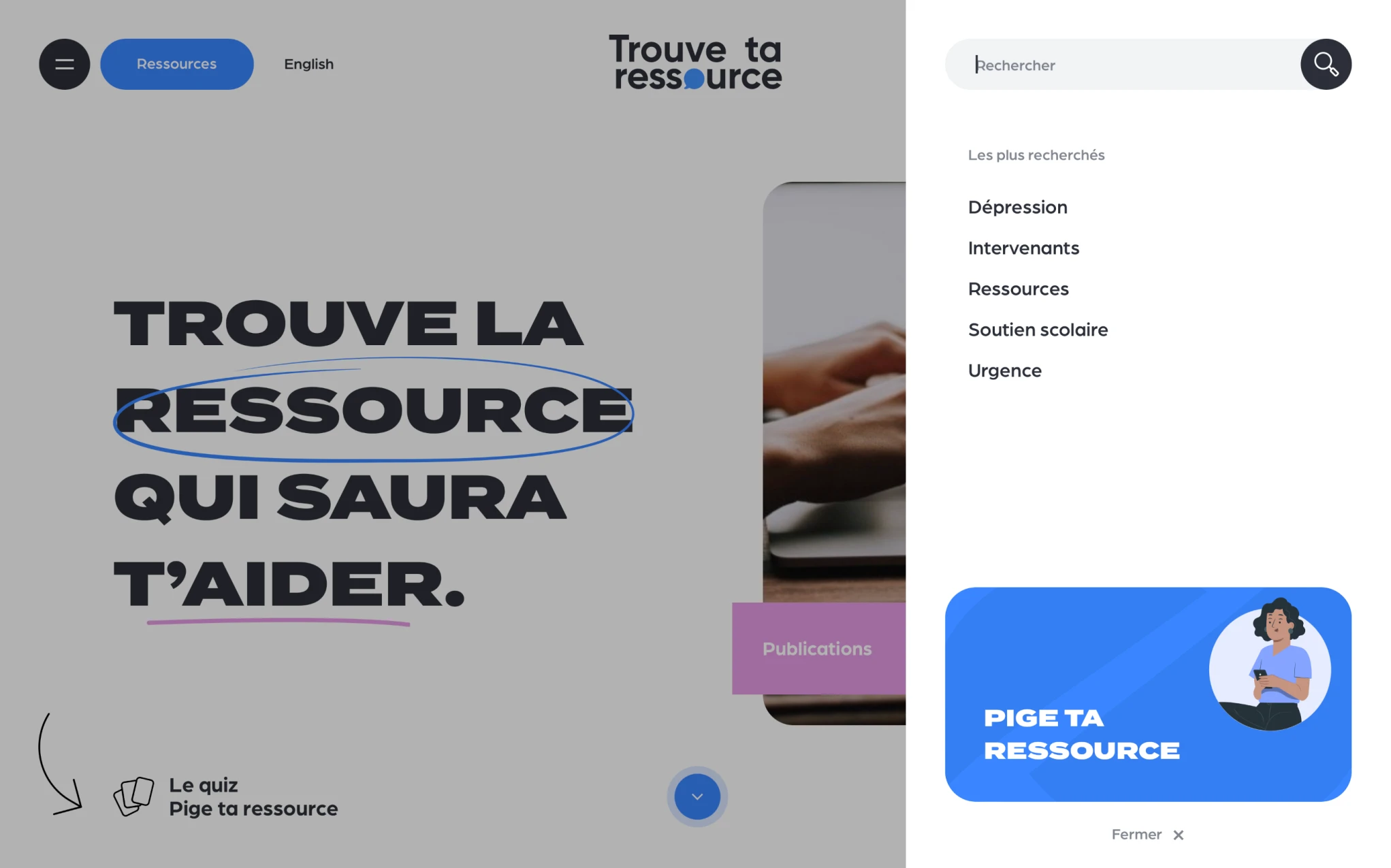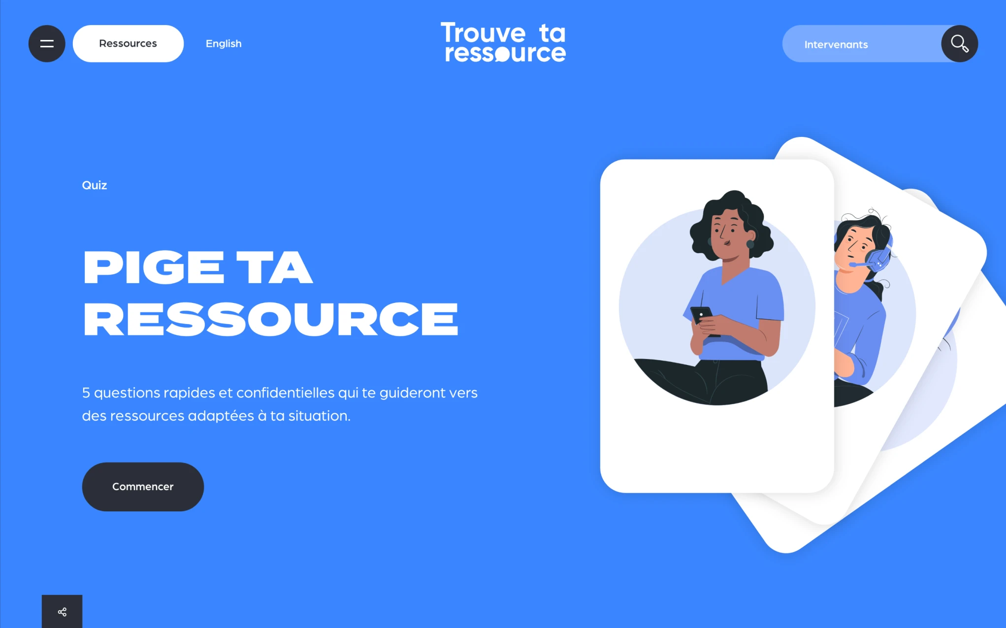 En 2022, j’ai mis à profit mes compétences en développement front-end pour le projet Trouve ta Ressource pour l’agence Blanko. Ce projet m’a permis de mettre à profit mes compétences en HTML, Sass, JavaScript et Barba.js pour créer une interface utilisateur fluide et intuitive.